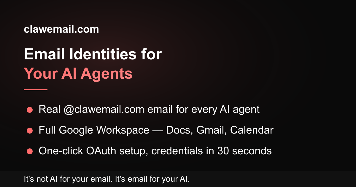ClawEmail: 1min setup for OpenClaw agents with Gmail, Docs